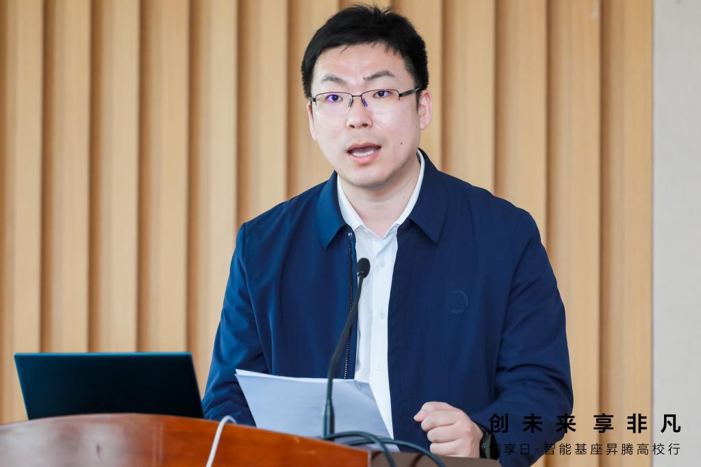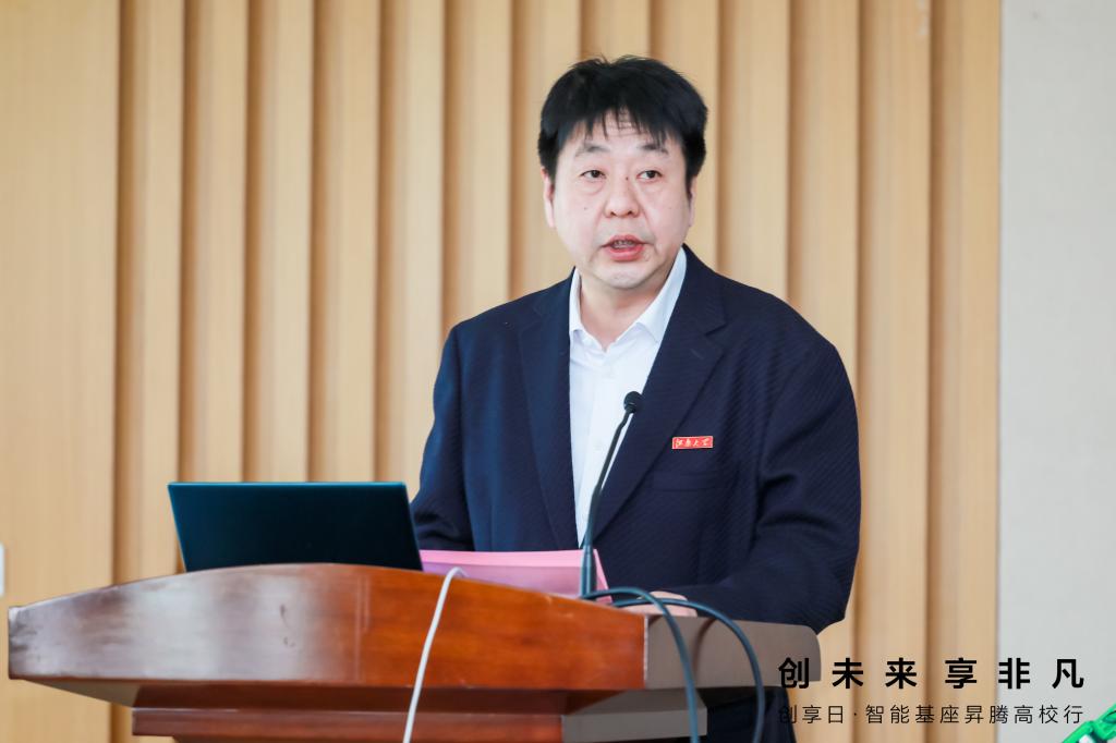 倪松涛代表学校致辞。他介绍了“智能基座”产教融合协同育人项目的背景和合作内容,肯定了ok138cn太阳集团-华为“智能基座”协同育人基地项目在过去的两年内取得的多项成果,并表示学校将持续深化产教融合协同育人,创新优化人才生态链,进一步推动双方在人才培养、课程建设、创新实践等方面更深层次、更广领域、更高水平的合作。