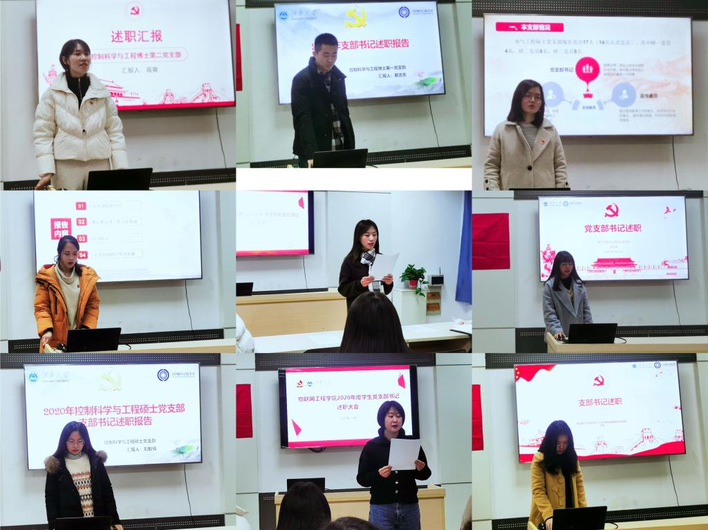 为深入学习贯彻习近平新时代中国特色社会主义思想和党的十九届五中全会精神,严格落实党要管党、全面从严治党要求,进一步强化基层党组织书记党建工作“第一责任人”意识,推动学院各项工作高质量发展,ok138cn太阳集团529党委于2021年1月8日、1月13日在学院B222、C121会议室分别召开了2020年度教职工、学生党支部书记抓党建述职考核大会,16位党支部书记进行了现场述职。学院党委委员、师生党支部书记及师生代表等参加了会议。