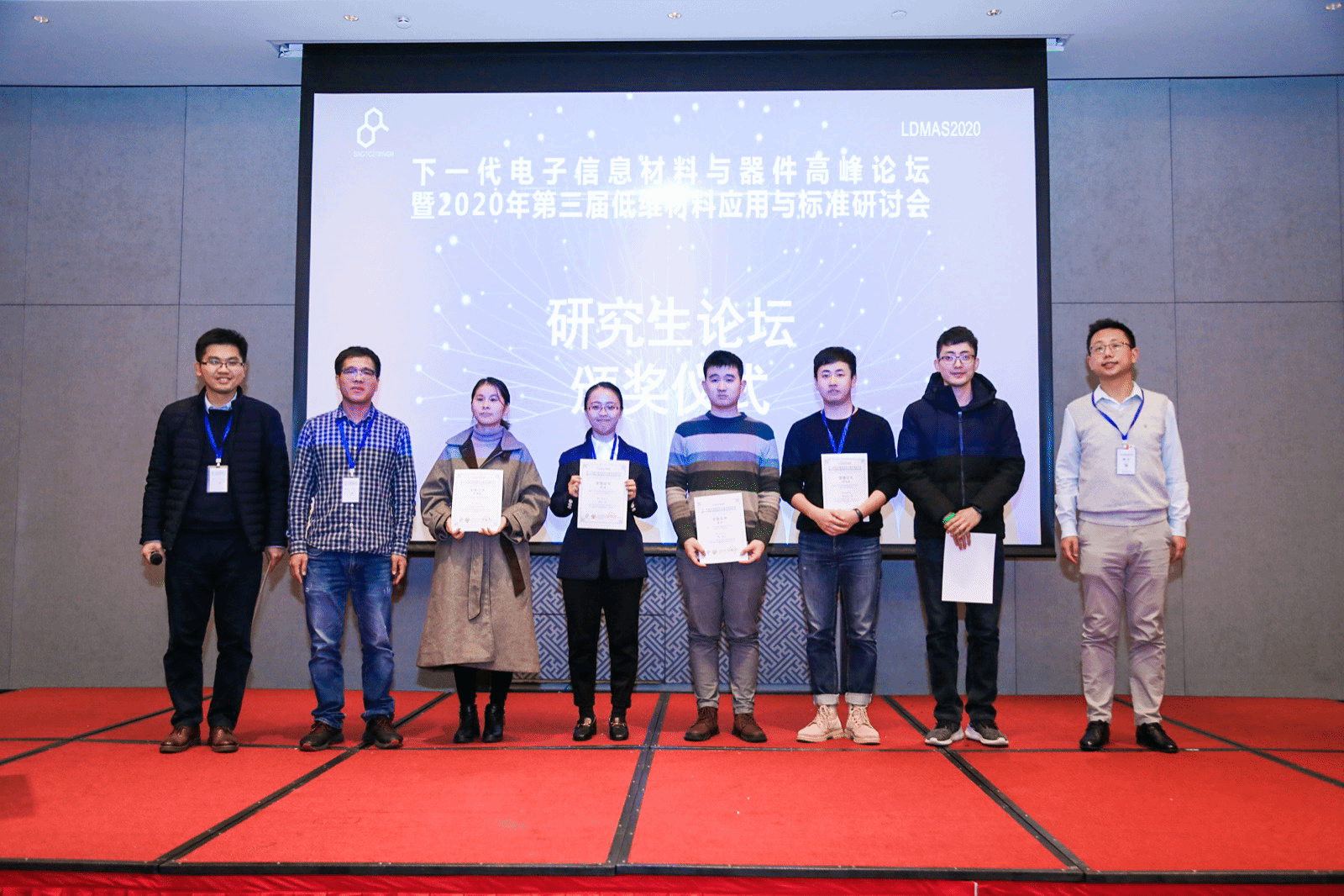 大会以“低维材料应用与标准”为主题,与会专家学者围绕新型半导体材料在下一代电子信息器件中的应用,共同探讨如何提前规划布局、如何政产研融合推进、如何参与和主导国内外相关标准等重要议题。我校ok138cn太阳集团529电子工程系肖少庆、南海燕和万茜三位老师带领团队学生出席并参加会议,其中肖少庆老师受组委会邀请针对目前低维半导体的制备和光电性能的提升,做了交流汇报;团队多名研究生参加了研究生论坛环节,与多所985院校博士研究生一起交流讨论,其中研二学生倪俊豪和谭朴的报告得到了与会专家的高度认可,荣获优秀报告奖。