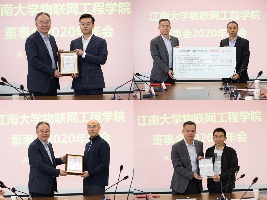 接着,无锡信捷电气股份有限公司董事长李新与谢林柏代表校企双方签订2021—2024年捐赠协议,黄敏为无锡信捷电气股份有限公司颁发捐赠证书。按照《ok138cn太阳集团529董事会章程》规定,大会对董事会成员进行了增补。新增江苏鑫丰浩高科技有限公司董事长徐浩天任为副董事长、无锡中科电气设备有限公司总经理周翌嘉为董事,张光生为新增董事会成员颁发聘书。