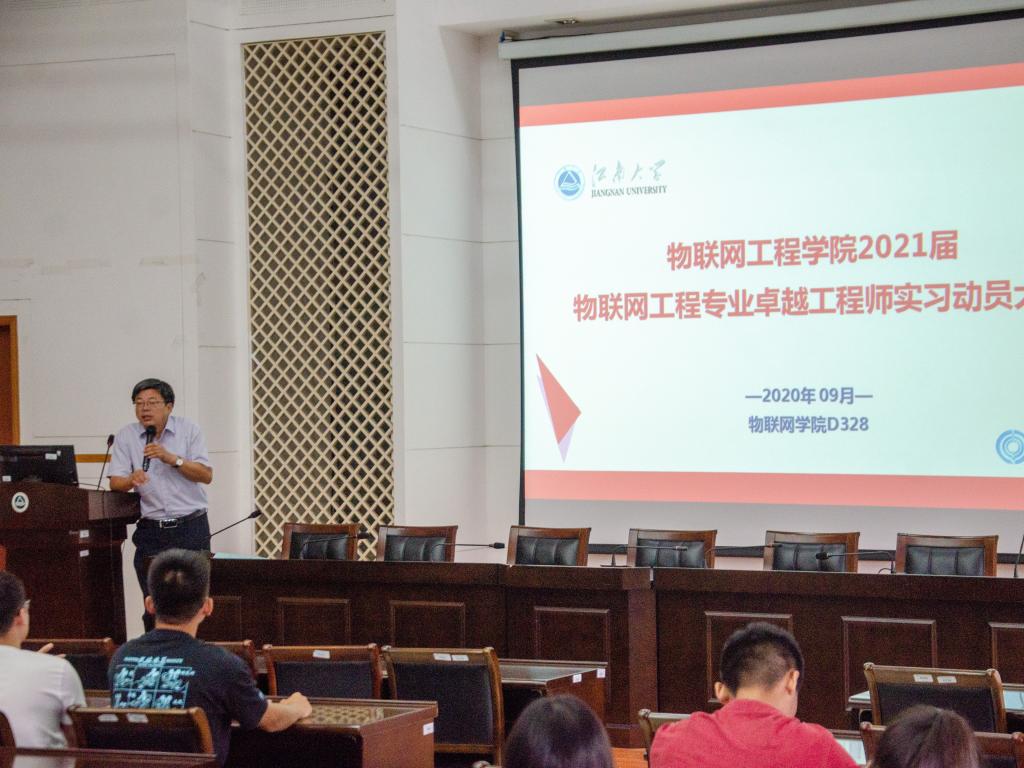 朱启兵结合自身求学、执教经历,回顾了物联网工程专业的创立、发展历程,从为什么要实习、如何实习、实习效果三个维度全面地介绍了实习工作。他指出,学院的物联网工程专业是国家特色专业、教育部首批“卓工计划”、首批“专业综合改革试点”专业,他希望同学们统一思想,始终以爱校荣校、爱院荣院的深厚感情,饱满的工作热情、高度的责任感和使命感投身到工程实践中,在校内导师和企业导师的指导下,顺利的完成实习工作。