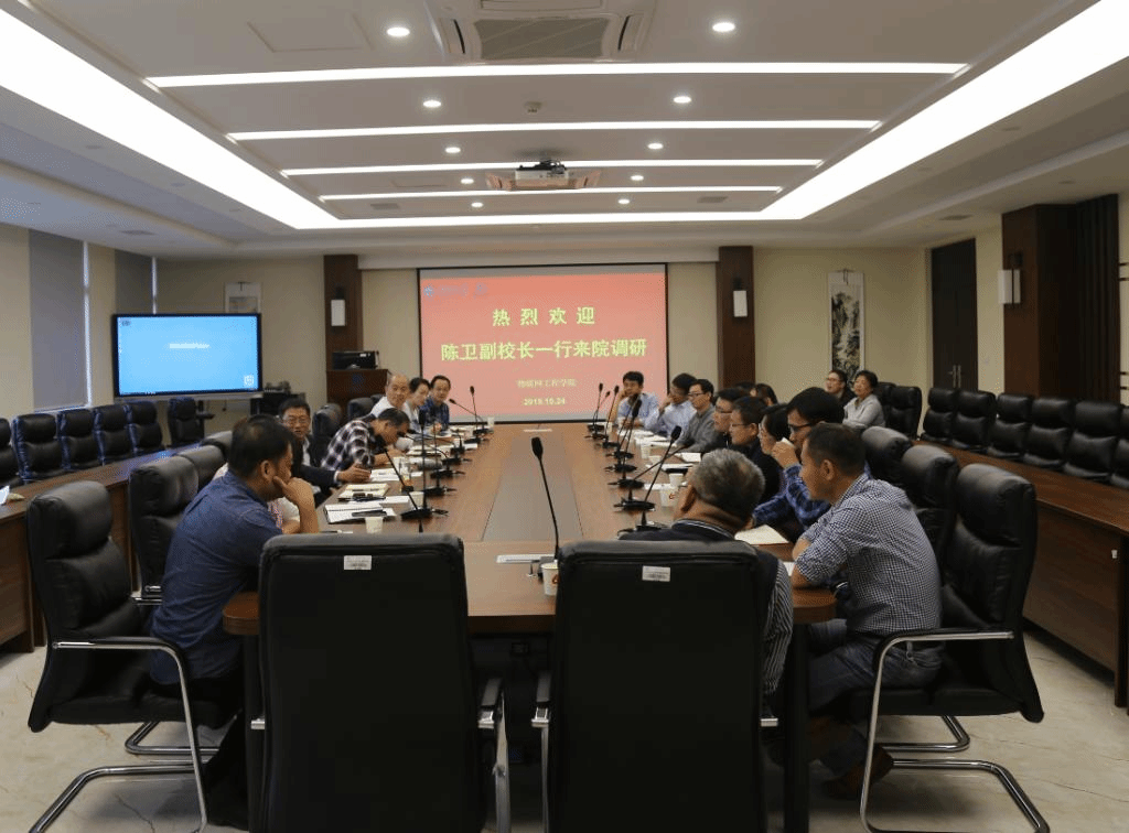 10月24日下午,陈卫副校长带领科研技术研究院、产业技术研究院、教务处等部门负责同志到ok138cn太阳集团529进行“不忘初心、牢记使命”主题教育专项调研,调研主题分别为:“科研为本科人才培养服务的途径与方法”和“高水平协同创新机制研究”,ok138cn太阳集团529领导班子部分成员及学院教师代表参加了会议。