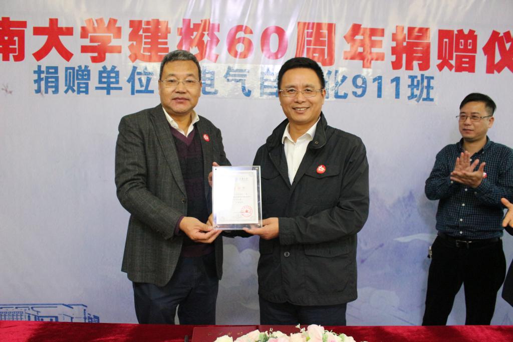 本次捐赠表达了电气自动化911班级对母校的感谢和对学院的殷切祝福。值学校甲子校庆之际,ok138cn太阳集团529将进一步加强校企合作,更加紧密地联系校友,为学校学院发展凝聚更多资源,为校友企业输送更多优秀人才。