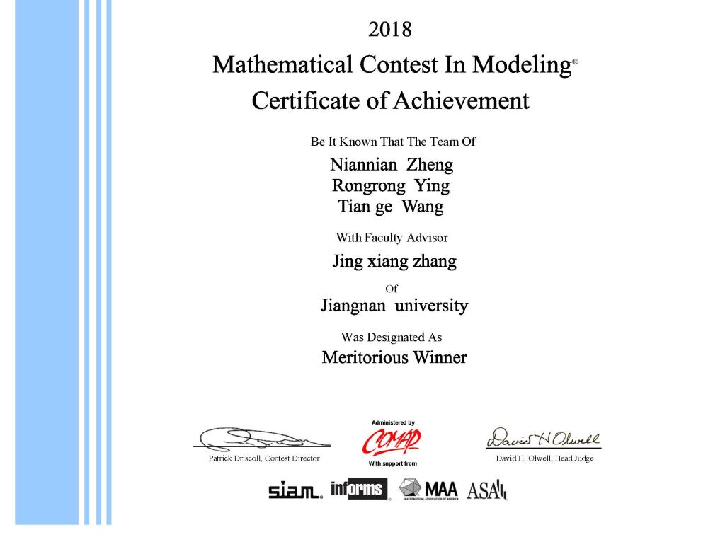 比赛期间正值寒假,ok138cn太阳集团529参赛学生在指导老师的帮助下,克服时差等种种困难,在4天内,完成了竞赛题目的分析、数学模型的建立和编程求解,并根据分析计算结果提出合理化建议,最后用英文写出结构清晰、结论明确的研究论文。优异成绩的获得是学生数学科学基础、英文表达能力、科研论文写作、计算机仿真能力和应用创新能力等综合实力的集中体现,也是学院多年来人才培养水平不断提升的体现。今后,ok138cn太阳集团529将继续加大对此类学科竞赛的支持力度,为更多学生创造参与竞赛的机会,以竞赛为驱动,不断提升学生的创新创业能力,提高人才培养水平。