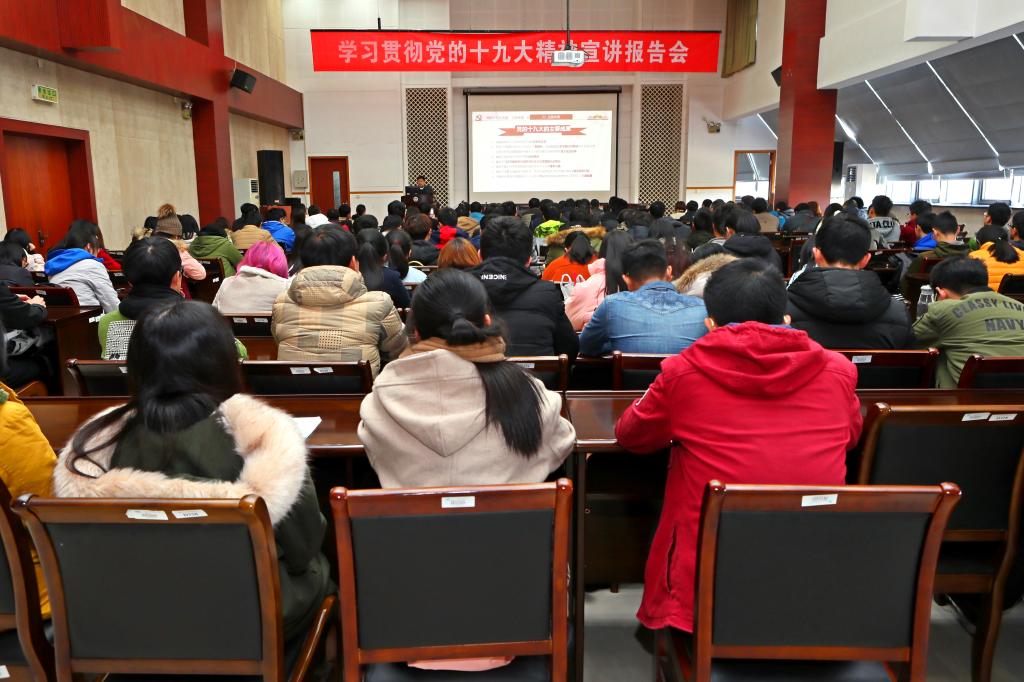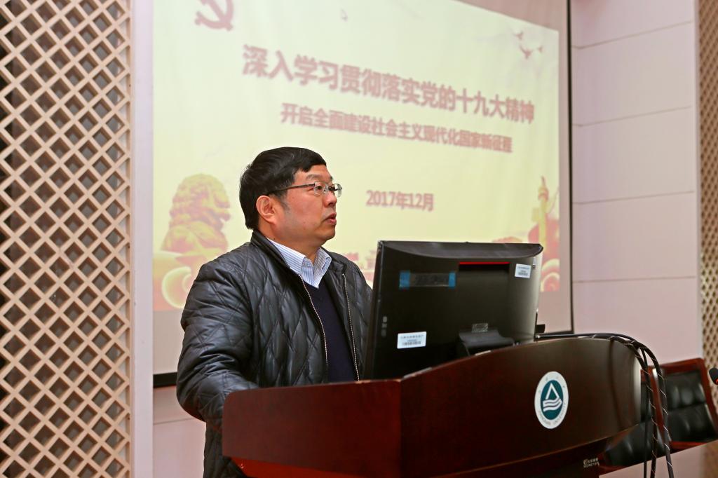 12月8日下午,ok138cn太阳集团学习贯彻党的十九大精神宣讲团报告会在ok138cn太阳集团529D328会议室举行。宣讲团成员、校长陈坚以《深入学习贯彻落实党的十九大精神,开启全面建设社会主义现代化国家新征程》为题,为ok138cn太阳集团529师生党员、入党积极分子代表150余人作了报告。ok138cn太阳集团529党委书记程捷音主持报告会。