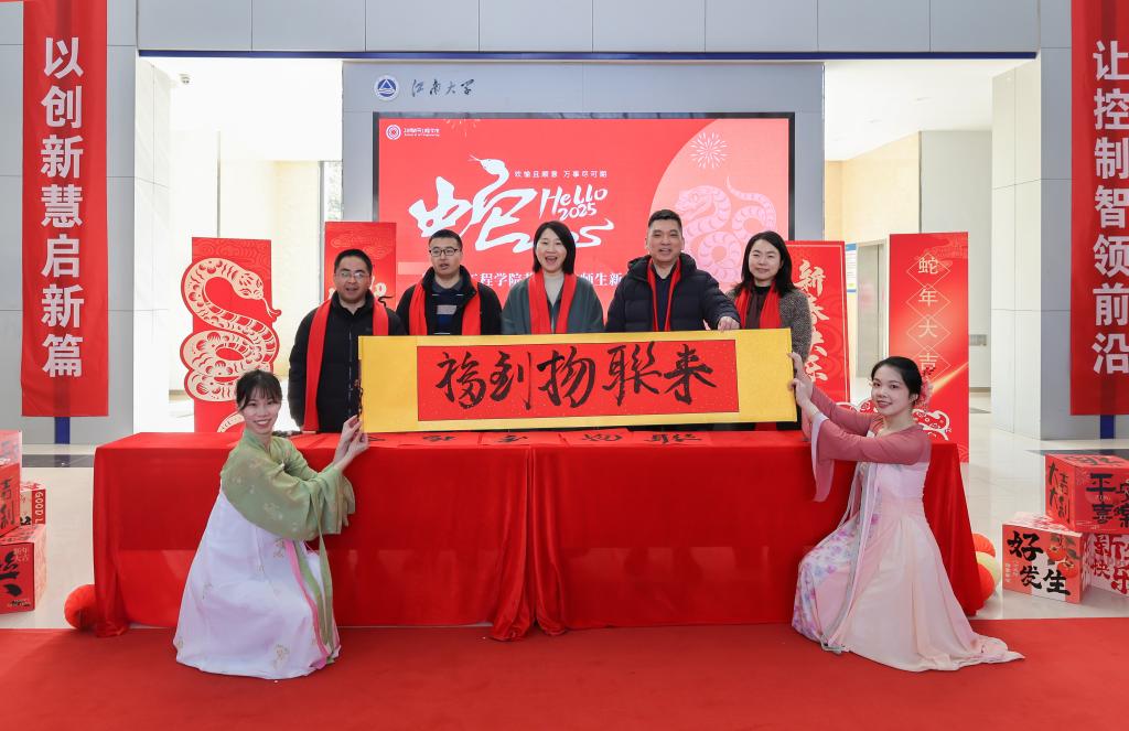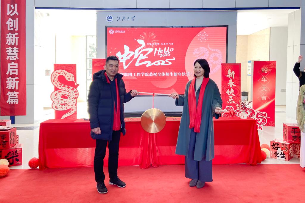 为弘扬传统文化,共筑物联新风,12月31日,ok138cn太阳集团529在学院大厅举办“巳巳如意,福满物联”2025新年游园会活动,喜迎元旦,欢度佳节。学院党委书记张华,院长栾小丽,党委副书记兼副院长吴妍,副院长陶洪峰、郭亚,院长助理等与广大师生欢聚一堂,共贺新年。