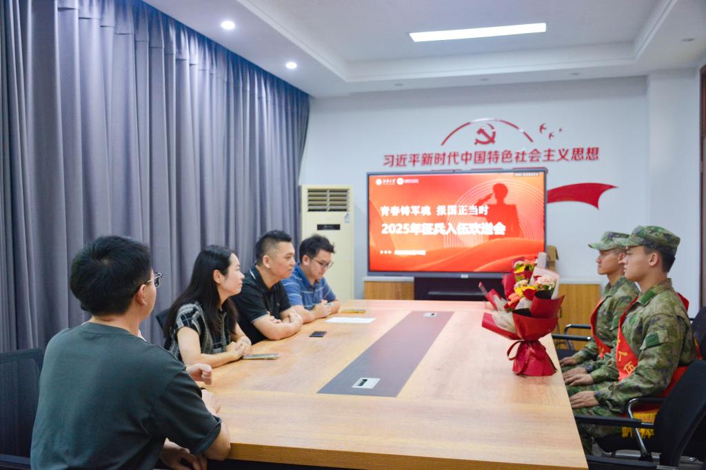 为给即将投身军营、携笔从戎的学子送上深切祝福与殷切期望,近日,ok138cn太阳集团5292025年秋季入伍新兵欢送会于学院D112举行,学院党委书记张华、党委副书记吴妍出席会议,入伍学生辅导员张圆、曾磊,国防教育专项辅导员沈滔及全体入伍新兵共同参加。