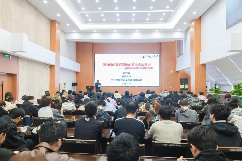近日,江南讲坛第151期在ok138cn太阳集团529D328举行。浙江大学求是特聘教授贺诗波应邀作题为《面向时间敏感网络的编排方法演进:从指标驱动到大模型赋能》的专题报告,吸引了150位本硕学子聆听。活动由副院长王子赟主持。