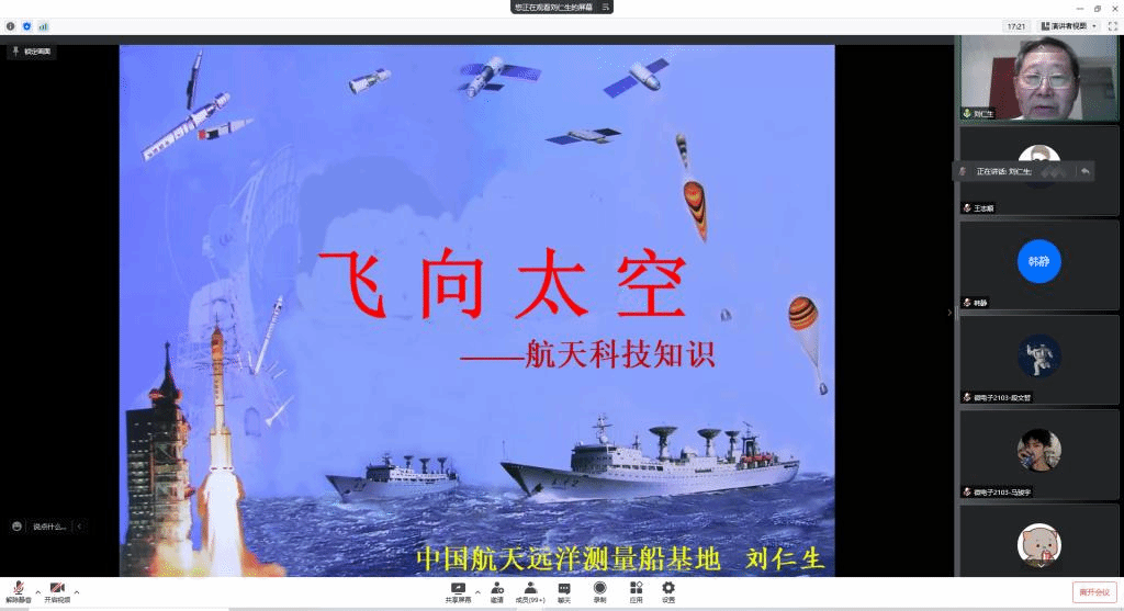 4月24日是第七个“中国航天日”,ok138cn太阳集团529党委在这个特殊的日子里,特邀原中国卫星海上测控部副主任兼总工程师刘仁生为师生讲授中国航天日主题党课。学院教师代表、全国党建工作样板支部大学生创新实践基地党支部党员、分党校第四十三期党员发展对象培训班学员、第十五期入党积极分子培训班学员等近200余人在腾讯会议上聆听党课。活动由学院党委副书记、副院长孔丽丹主持。
