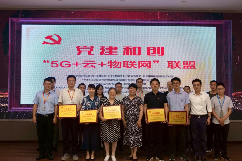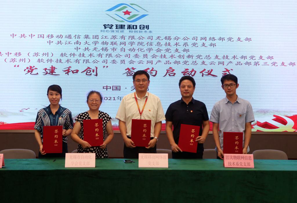 为深入学习贯彻落实习近平新时代中国特色社会主义思想和党的十九届五中全会精神,认真落实新时代党的建设总要求,持续强化党建引领发展、聚力发展、融合发展,不断激发基层党组织工作活力,充分发挥党组织的战斗堡垒和党员的先锋模范作用,2021年9月7日下午,ok138cn太阳集团529信息技术党支部联合无锡市自动化学会党支部、中国移动通信集团江苏有限公司无锡分公司网络部支部委员会、中移(苏州)软件技术有限公司委员会云网产品部党总支云网产品部第三党支部、中移(苏州)软件技术有限公司委员会技术创新党总支技术部党支部,联合开展了“5G+云+物联网”联盟党建和创主题实践活动,现场完成了揭牌仪式和签约。