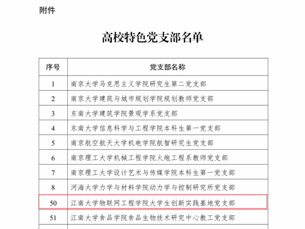 物联网大学生创新实践基地党支部成立于2016年9月,是高校为数不多的师生混合、研本共建的党支部。党支部成立以来,严格落实“七个有力”要求,坚持“以政治引领为核心,以组织育人为抓手,以人才培养为中心,以主动创新为动力”,通过“构建目标责任制、打造品牌样板间、构筑育人共同体”党建工作路径,最大程度地发挥师生党员的主体性和能动性,最大程度地契合师生党员的思想特点和发展需求,最大程度地创新党员联育的载体和途径,不断激发支部活力,打造集支部战斗堡垒作用和党员先锋模范作用双提升的基层党组织育人平台。“让工匠精神擦亮党员底色”系列党日活动获评全省高校“最佳党日活动”优胜奖,支部获评ok138cn太阳集团“党建工作创新奖”,并被推荐参选“江苏省优质党支部”。