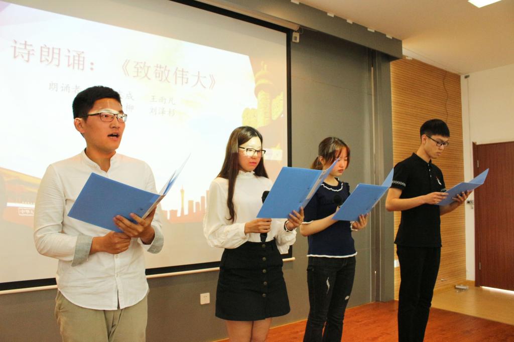 活动伊始,全体与会人员起立,共同奏唱国歌。在庄严的国歌声中,全体学员开始了大会议程。首先是主持人对本期培训班的开展情况做了总结,紧接着由数字媒体学院的学员代表作《苦难辉煌》阅读的主题实践成果汇报展示。在之后的“致敬马克思”环节中,学员们分别以朗诵《忆马克思恩格斯》节选、诗朗诵《致敬马克思》、诗朗诵《致敬伟大》的形式,表达他们对这位世纪伟人的崇敬。在“致敬奋斗”环节中,学员们首先以演讲《北大师生座谈会之我见》的形式回应了习近平总书记对青年大学生的热切希望,表达了自己建功立业的渴求以及立志承担历史重任的责任感,表现了“一寸丹心为报国”的雄心壮志。而之后的《光荣与梦想》、《歌唱祖国》、《精忠报国》等歌曲的演唱以及诗朗诵《致奋斗》更加表现出当代青年对国家、对理想的热爱。