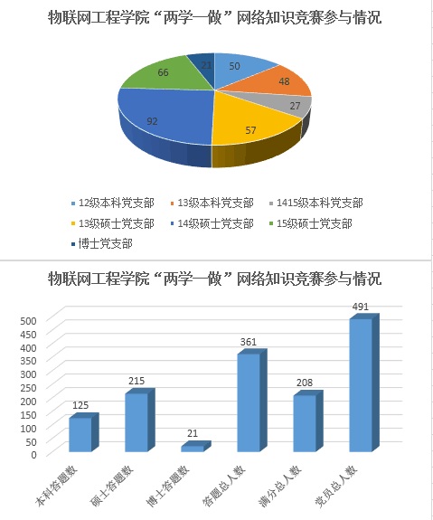 本次网络竞赛内容主要包括《中国共产党章程》、《准则》、《条例》以及习近平总书记系列重要讲话精神等相关知识,共设计50道选择题。在竞赛开始前给予同学们五天时间温习并强化相关知识内容,之后由问卷星平台发布试题,参赛选手由手机、电脑都可随时访问进行答题,并在结束答题后显示分数与题目解析,错误题目着重标注,帮助学生加深对党规党章等内容的了解。此次我院共有361名正式、预备党员参与网络竞赛活动,占全体学生党员数的70%,其中本科生125名,硕士生215名,博士生21名,根据答卷结果分析,答卷平均正确率高达96.55%,共208名同学获得了满分的好成绩。