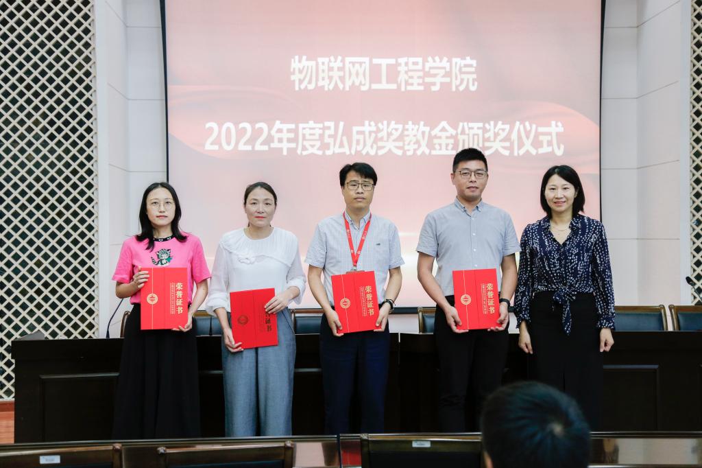弘成奖教金是由弘成科技发展有限公司设立,旨在奖励为学院发展建设做出重要贡献或取得突破性、标志性成果的个人和集体,分别设有党建创新奖、科技突破奖、教育教学奖、管理服务奖、校园文体奖等奖项。2022年度“弘成奖教金”共设一等奖4项、二等奖8项、三等奖12项,其中,一等奖分别授予大学生创新实践基地党支部(入选全国党建样板支部)、“物联网技术应用”教育部工程研究中心(通过评估并获良好等级)、许德智老师(荣获国家优秀青年科学基金)和院乒乓球队(荣获ok138cn太阳集团“院长杯”乒乓球赛冠军)。