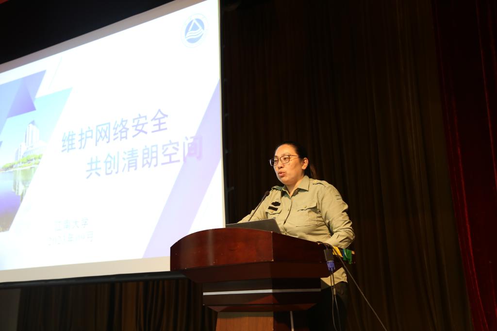 孔丽丹首先对2023级新同学表达了热烈的欢迎和祝贺,并作“维护网络安全,共创晴朗空间”主题讲座。她从网络安全相关法律法规入手,告诫学生互联网不是法外之地、互联网不是虚拟空间;以真实案例为警示,强调维护校园网络安全和网络文明的重要性;以ok138cn太阳集团师生网络文明公约、学生诚信档案管理办法为纲,倡导师生共同重视个人网络安全防护,共建平安美好校园。最后,她勉励在座本科新生,秉承“笃学尚行,止于至善”的校训精神和“不唯上,不唯书,只唯实”的院训精神,不负韶华,不枉青春,努力实现入学伊始、意气风发之时所设定的奋斗目标。