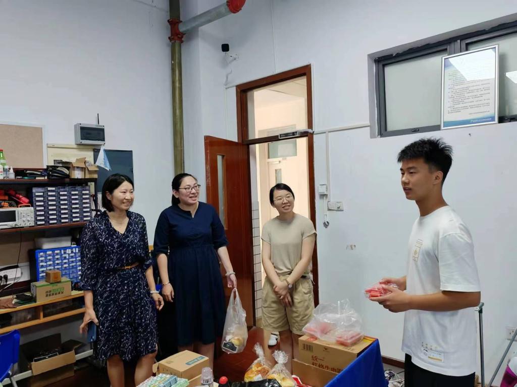 为推深做实主题教育,全面了解暑期留校学生的思想动态、学习与生活情况,7月28日上午,ok138cn太阳集团529院长栾小丽、党委副书记孔丽丹、分团委书记洪筱及辅导员王涛、屈跃宽一行深入学生宿舍、实验室、科创俱乐部等地看望留校学生,送去消暑慰问物资,给留校学生带去学院的关心和问候。