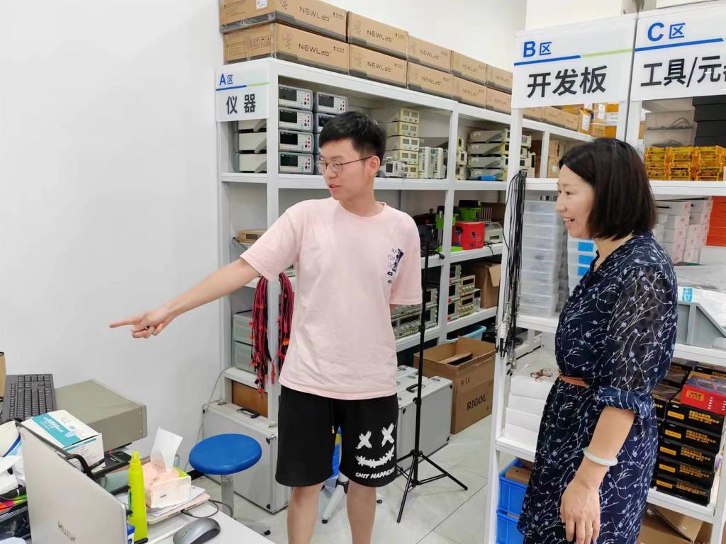 在大创基地,学院领导走进电子设计俱乐部、智能车俱乐部、电力电子俱乐部等,了解同学们的备赛情况,并为即将迎战“4天3夜”全国大学生电子设计大赛的俱乐部同学送去速食和饮用水等备赛物资。同学们纷纷表达了对学院的感谢,部分已结束地区选拔赛的同学汇报了比赛成绩和国赛备赛情况。当得知在刚刚结束的全国大学生智能汽车竞赛华东赛区中,智能车俱乐部同学一举拿下独轮车组、单车越野组、电能接力组三个第一并以历史最好成绩挺进全国决赛时,现场响起了热烈的掌声。栾小丽鼓舞同学们再接再厉,不负辛勤和汗水,在接下来的比赛中再创佳绩。