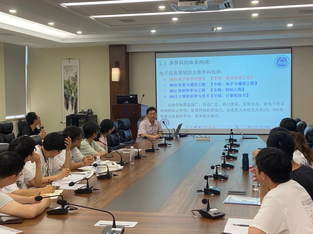 开营仪式后,以分会场形式开展学科介绍交流。控制科学与工程(含控制工程)、电子科学与技术(含集成电路工程)、电气工程、通信工程、新一代电子信息技术5个学科的负责人潘丰教授、顾晓峰教授、沈艳霞教授、李正权教授、郭亚教授,以及各学科的优秀教师代表参与了交流。各学科责任教授详细介绍了学科特点及优势、研究团队、学科平台、研究方向、研究项目等,各学科的优秀教师代表介绍了所在团队的主要研究内容及成果。营员们就研究方向的选择、研究生期间的学习特点、研究生未来就业等话题与各位老师进行了深入交流。会后,营员在志愿者的带领下游览了校园。