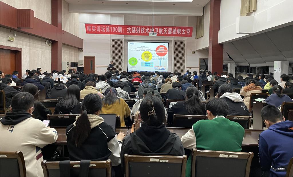 4月6日晚,ok138cn太阳集团529“唯实讲坛”系列学术讲座第100讲在学院D328会议室举行。中科院国家空间科学中心二级研究员、博士生导师韩建伟教授为师生们带来了一场以“抗辐射技术护卫航天器驰骋太空”为主题的精彩报告。本次讲座由学院辅导员李灿主持,180余名师生参加了本次活动。