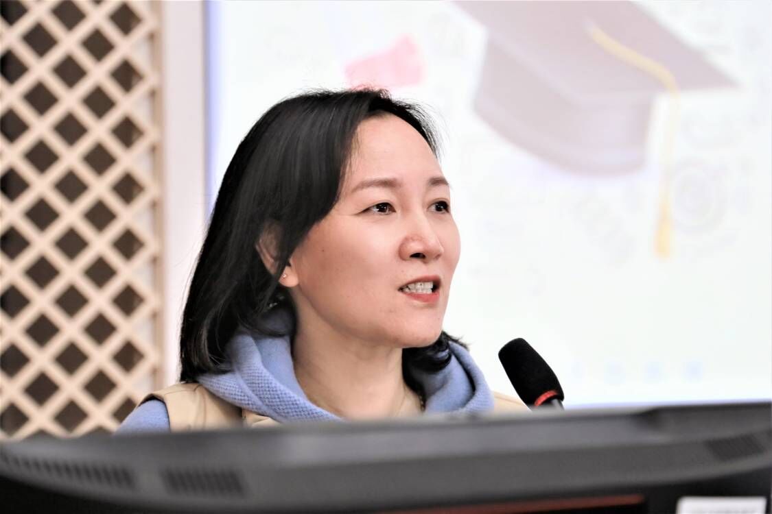 心理健康辅导员张圆与班主任代表秦宁宁教授讲话
