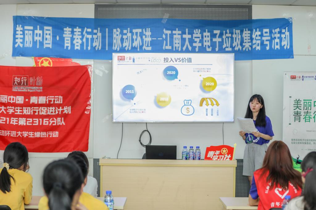 他们为什么要收集校园里的电子垃圾呢?这得益于一项由知行计划、达能中国饮料、中国光华科技基金会联合发起的“脉动环进大学生绿色行动”。据悉,该行动积极响应共青团中央“美丽中国·青春行动”号召,共支持全国15所高校大学生团队,围绕资源节约议题,开展“绿色工坊”及“绿色行动”,聚焦“大学校园绿色生活方式”,在提升大学生环境意识和绿色能力的同时,影响并带动更多公众,共同助力生态文明建设,推进绿色可持续发展,践行绿色生活方式,共建美丽中国。