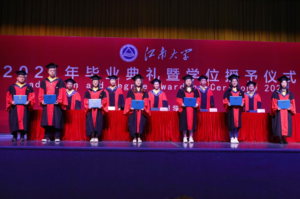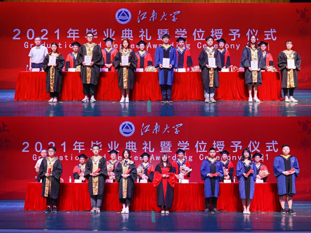 毕业典礼结束后,学位授予仪式隆重举行。毕业班辅导员金钰锁、李灿、洪筱、王志顺为毕业生拨穗正冠,学院领导为毕业生颁发学位证书并合影留念。