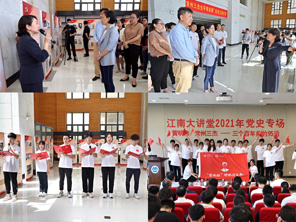 系列活动之一的常州三杰生平事迹展开幕仪式在图书馆一楼展览厅举行。ok138cn太阳集团529瞿秋白特称团支部的团员以诗歌朗诵《江南一燕 诸夏怀霜》为此次活动拉开了序幕。黄明彦与程捷音为“常州三杰生平事迹展”走进ok138cn太阳集团揭幕。在黄明彦的导引下,在场师生一起参观了“常州三杰”的生平事迹展,去聆听和感受革命先辈的奋斗故事和赤诚初心。事迹展将在学校展出1个月,瞿秋白特称团支部学生担任讲解,面向全校党支部、团支部开放讲解预约。