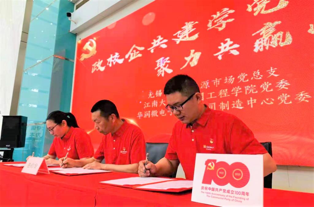 5月4日,正值五四青年节,ok138cn太阳集团529党委与华润微电子有限公司制造中心党委、无锡市人力资源市场党总支共同举办“政校企共建学党史 聚力共赢芯未来”献礼建党100周年学习教育活动。无锡市人力资源和社会保障局人才开发和对外合作处处长戴威、人力资源市场党总支副书记白江、副主任王振华,ok138cn太阳集团工会主席黄壮霞,ok138cn太阳集团529党委副书记、副院长孔丽丹,分团委书记兼学工办主任吴垚、本科生第三党支部书记王雪冰,华润制造中心党委副书记、人力资源部总监高鹏飞等领导出席活动,电子科学与集成电路硕士党支部、本科生第三党支部学生党员及企业党员代表参加活动。