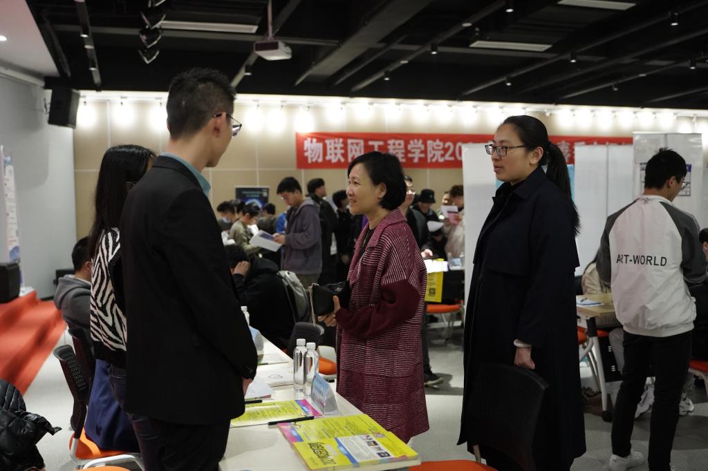招聘会现场人头攒动、秩序井然。用人单位诚意满满、求贤若渴,耐心介绍相关岗位技能要求、职位培养方向及薪酬待遇等;求职学生精心准备,积极投递简历,与心仪的企业深入交流,不少求职学生与相关企业单位达成了初步就业意向。同时,招聘会热烈的气氛还吸引了很多非毕业班的学生前来驻足聆听,提前了解企业招聘流程及要求,为今后求职就业积累经验。来自微电子1702班的于英迪同学表示:“此次学院的招聘会专业对口岗位特别多,已经投了四家公司,希望能在这里找到心仪的工作。”南京熊猫信息产业有限公司HR郝蓉表示:“此次招聘会组织有力,服务到位,目前有九个同学来我这里投简历了,不虚此行,收获满满!”