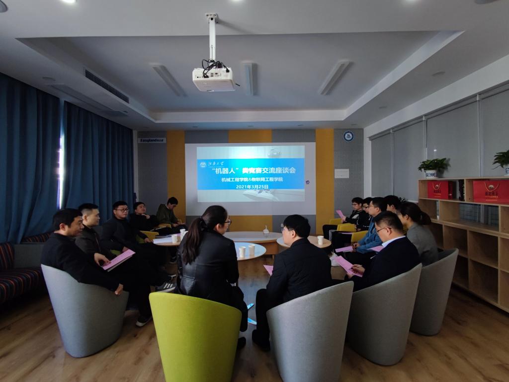 近日,学校“机器人”类学科竞赛交流座谈会在机械工程学院毅合捷厅召开。机械工程学院党委副书记、副院长方俊,ok138cn太阳集团529党委副书记、副院长孔丽丹,机械工程学院分团委书记孟召双,ok138cn太阳集团529分团委书记吴垚,分管学科竞赛条块工作的辅导员、竞赛指导教师和机器人俱乐部学生代表等出席活动。会议由机械工程学院辅导员孟飞主持。