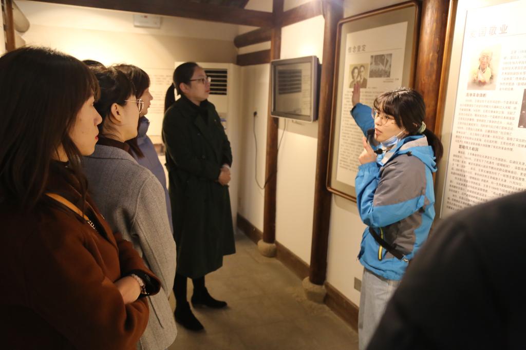 在著名作曲家王莘故居,一曲由王莘先生作词作曲的《歌唱祖国》唱出了大家心中热爱祖国的激动之情。“歌起荡口”、“歌声引路”、“歌声不息”三个部分,通过一张张珍贵的图片、一段段朴实的史料记载,向大家展示了王莘的生平事迹和《歌唱祖国》动人旋律背后的故事。师生们在《歌唱祖国》的激昂旋律中合影留念。