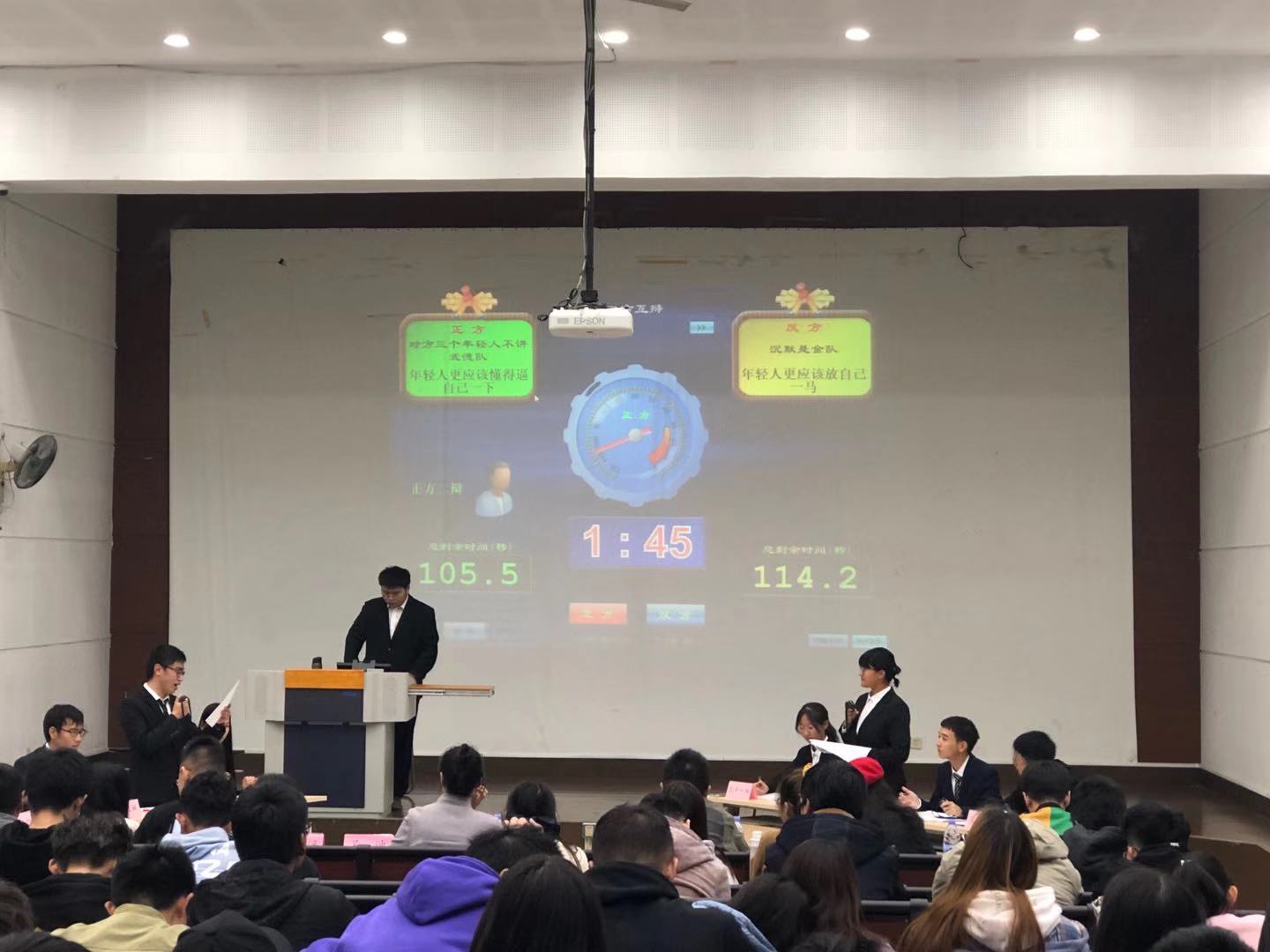 经过初赛和复赛的激烈比拼,来自自动化2006班的“不讲武德”队和物联网2003班的“沉默是金”队从16支参赛队中脱颖而出,晋级决赛。决赛现场,双方围绕辩题:“年轻人更应该懂得逼自己一把/放自己一马”,各抒己见,舌灿莲花。辩论开始后,双方辩手立场鲜明地摆出己方观点,正方一辩徐金宣同学指出懂得逼自己一下更有利于年轻人适应当代社会竞争模式,更有利于年轻人发展;而反方一辩刘贝妮同学则从社会压力的角度指出,年轻人在懂得努力重要性的情况下,更应该懂得释放压力。自由辩论环节,双方就当下年轻人的现状和年轻人应该抱有的态度展开激烈交锋。结辩环节,双方更是对对手的论点展开猛烈进攻,正方以大量的语境、举例限制对方的发挥,而反方也提出“内卷”一词开辟新战场,让人耳目一新,整个赛程高潮不断,掌声此起彼伏。