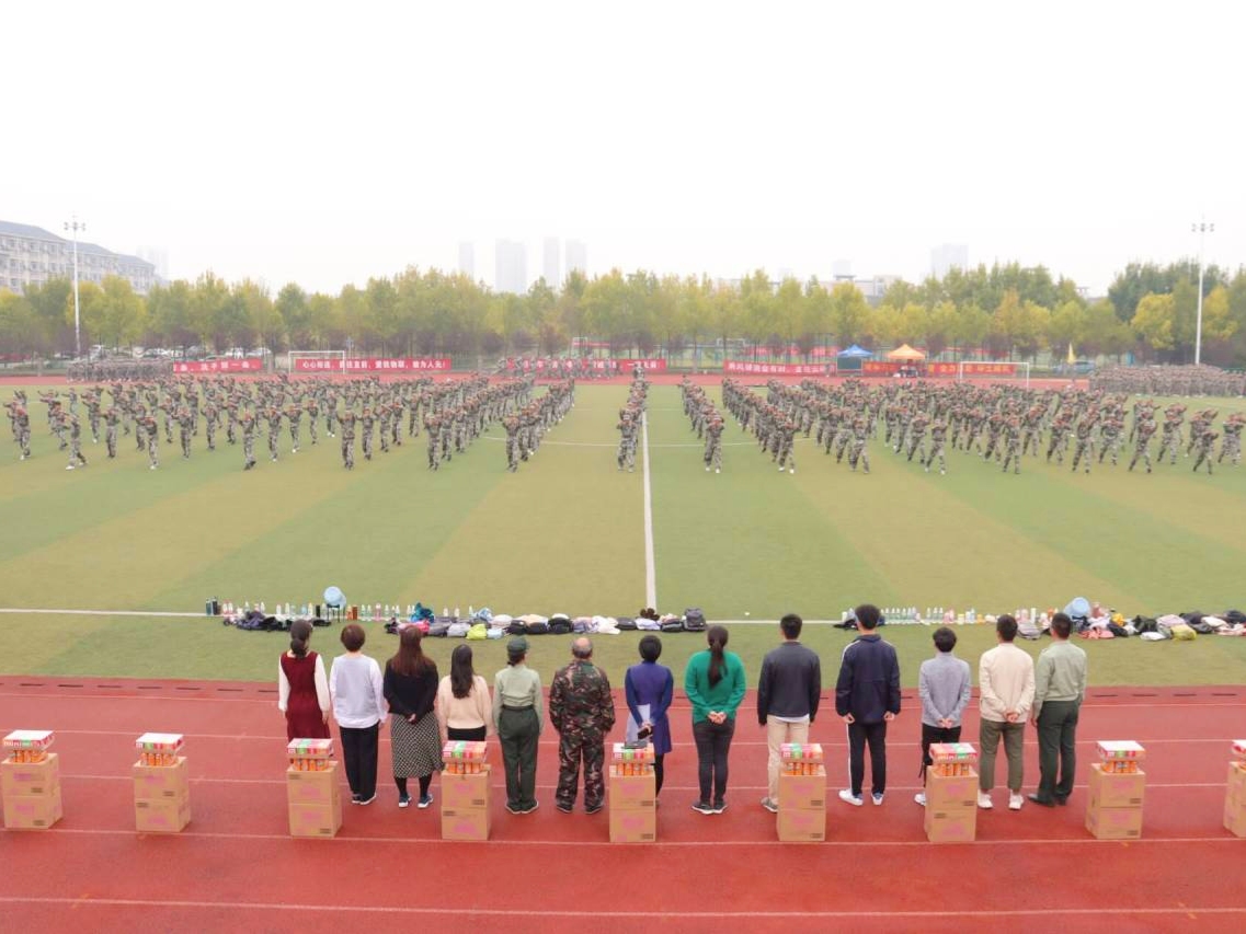 学院老师为教官和新生送上慰问品