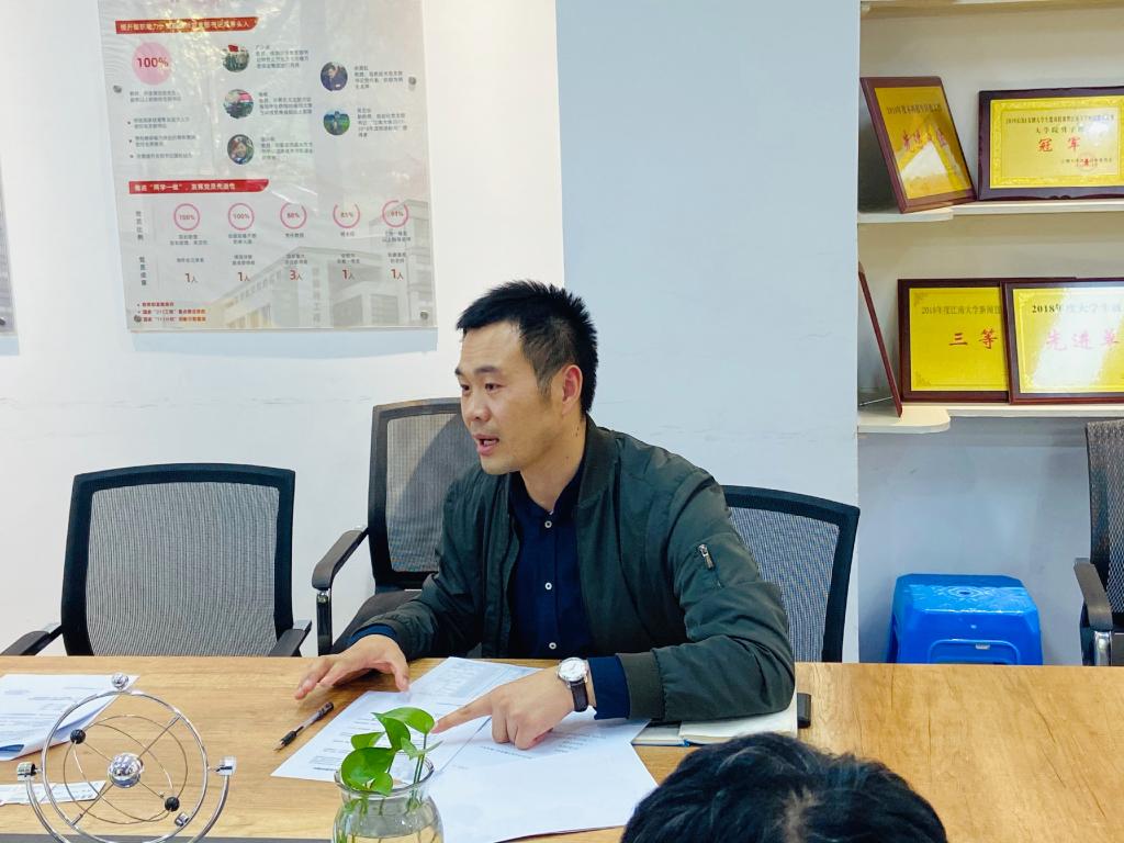 10月20日下午,无锡市新吴区旺庄街道工作委员会季要芳、新吴区旺庄科技发展有限公司副总经理吴丽敏、旺庄街道科创发展中心党支部书记周莲等来到ok138cn太阳集团529洽谈创新创业比赛事宜。物联网学院党委副书记、副院长孔丽丹,分团委书记、大学生创新实践基地党支部副书记吴垚,支部学生党员代表参与会谈。