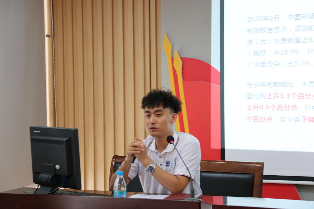 随后,ok138cn太阳集团生态文明建设实践团的宋鹏同学向参会人员进行了有关生态文明建设水治理的宣讲,介绍了当前我国水环境污染和治理的现状,对比分析了当前河道治理技术,并详细介绍了该实践团队自主研发的数字化河道水质监测平台,通过生物-生态治理技术对水环境进行有效治理,并通过传感器实时监测水质指数,以大数据、云平台进行数据处理和智能分析,为河道治理提供全面精准、及时智能的信息参考和问题诊断。