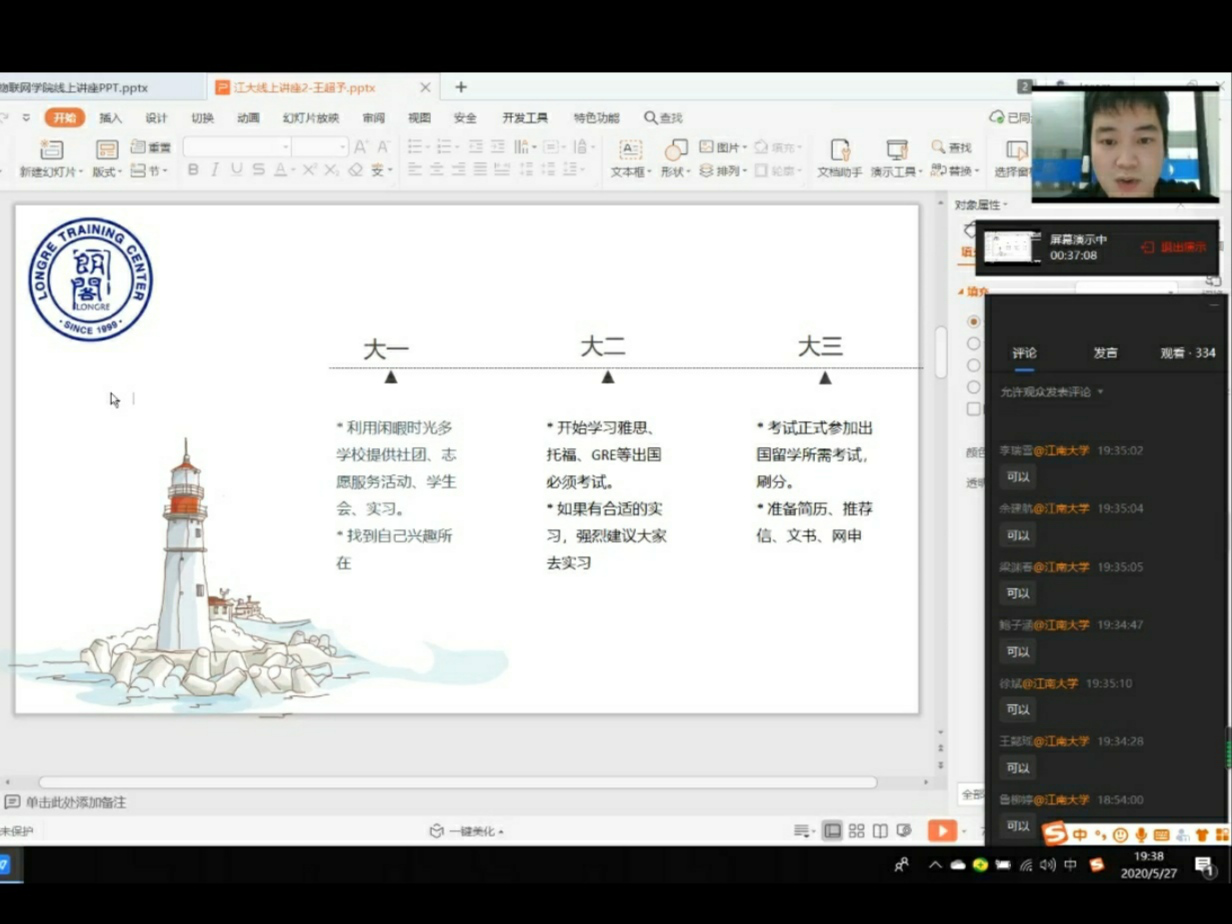6月11日,由ok138cn太阳集团529主办的唯实讲坛第56期,疫情后时代留学趋势变化通过网络直播成功举办,本次唯实讲坛由无锡维德教育科技有限公司执行董事徐珏女士和朗阁教育集团项目经理王超予先生主讲,ok138cn太阳集团529近360余名学生参与本次讲座。