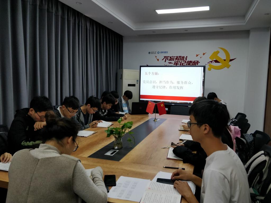 2019年11月7日,2017、2018级本科生联合党支部在学院D112开展了“不忘初心、牢记使命”主题教育——对照党章党规找差距汇报会。支部书记洪筱和全体学生党员、预备党员参加了会议。