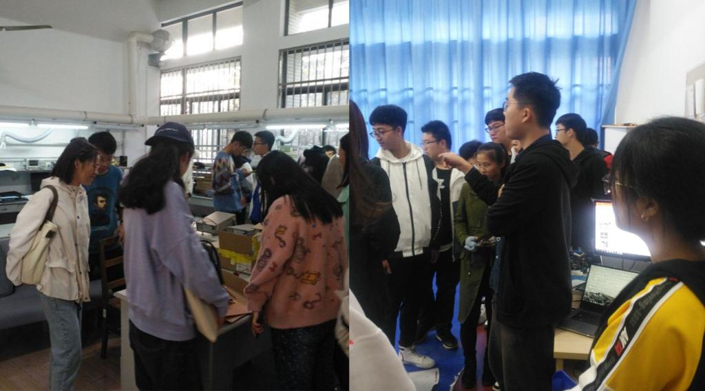 11月9日,我院组织了2019级大创基地展览参观活动,全院19级新生按班级分批参观了物联网学院大学生创新基地,首先,各个班级在学院门口合影留念;接着由ok138cn太阳集团529大学生科技协会创设部相关负责人在基地大厅为同学们介绍大创基地,在此环节中同学们对大创基地与相关竞赛有了初步的了解;然后,同学们来到学院C121,参观15级学长学姐们的综合设计作品,并观看了有关科技的视频讲解,通过观看视频以及相关人员的讲解,同学们对科创竞赛的兴趣与热情高涨;最后,同学们去到各个俱乐部,与俱乐部的学长学姐面对面交谈,近距离了解他们的科创之路。