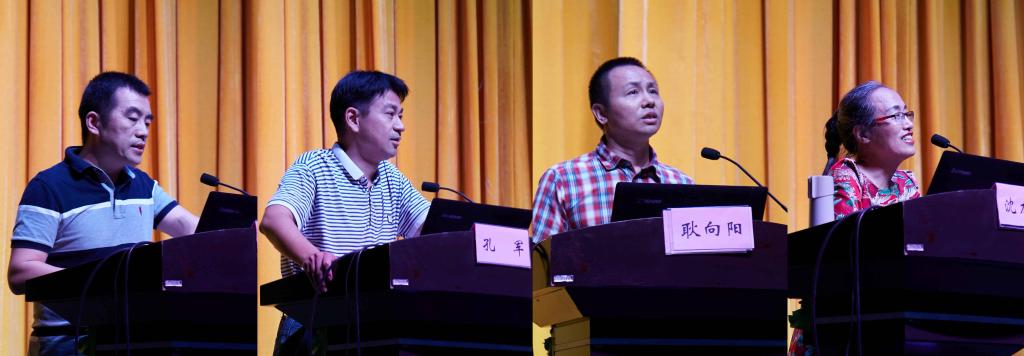 院领导柴志雷、孔军、耿向阳及校医院沈力晔(从左至右)依次发表讲话