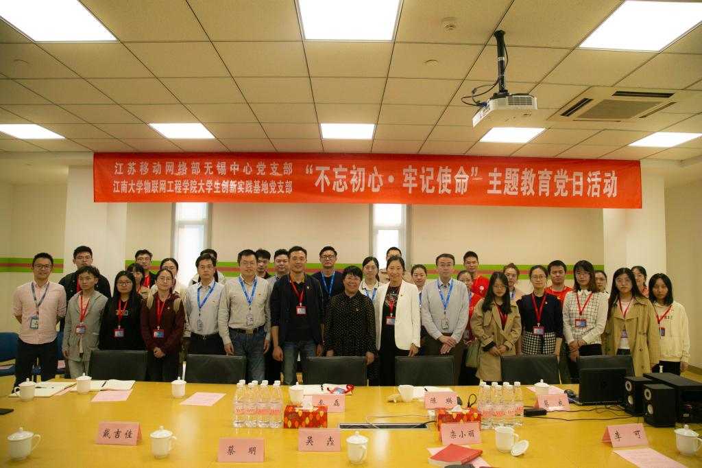 最后,江苏移动网络部无锡中心党支部书记陈瑛发言。她总结提出了三点:第一、理论学习要创新。她提到在“不忘初心、牢记使命”主题教育中,我们要多途径、多方式创新开展理论学习,同时对共建支部结对学习表示高度认可。第二、思想政治要加强。她提到此次主题教育,对于广大普通党员最重要的是思想政治上进一步加强,要认识到主题教育的重要意义,以主题教育让党组织更有凝聚力。第三、使命责任要落实。她讲到每个党员要将主题教育的思想认识,体现到工作和学习中的干事创业中去,作为企业要有勇担时代使命的责任,不断深入推进“融合、融智、融通”的工作方向,使5G业务进一步扩大到智能医疗、智能驾驶等新兴产业中去,不断攻关克难,不断创业担当,为实现“两个一百年”贡献更大力量,同时也提出,今后要多跟高校交流合作,将高校资源融入到企业发展中来。会后,共建支部书记还就加强科研合作,进一步做了沟通,双方支部合影留念。