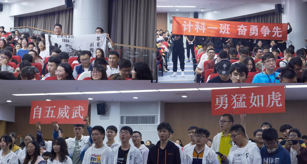 接着,各参赛班级按抽签顺序进行班级风采展示,其中有幽默风趣的班级视频,有构思巧妙的班况播报,有气势磅礴的诗歌朗诵,有悦耳动听的班级合唱,各参赛班级激烈的角逐、精彩的表现赢得现场观众们的阵阵掌声!后续由评委现场打分、现场工作人员紧张统计、吴垚老师全面评点,最终通信1802班夺得最佳人气奖,自动化1805班、微电子1802班和通信1802班荣获三等奖,二等奖花落自动化1604班与电气1801班,一等奖则由通信1701强势拿下!