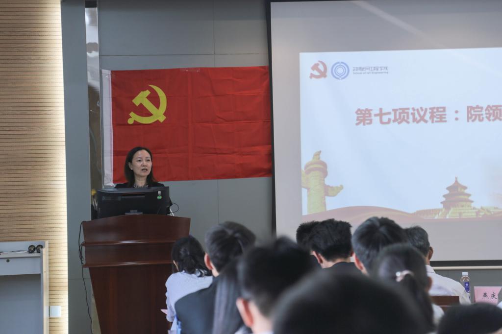 之后,程捷音书记发表了讲话。程书记向全体学生党员同志提出了几点殷切希望,希望各位党员要坚定理想信念,坚定正确的人生方向,要练就过硬本领,有持之以恒的毅力和决心,要养成良好的学习习惯,脚踏实地,求真务实。希望同学们,时刻以一名优秀党员的标准严格要求自己,为党和国家的事业贡献力量。