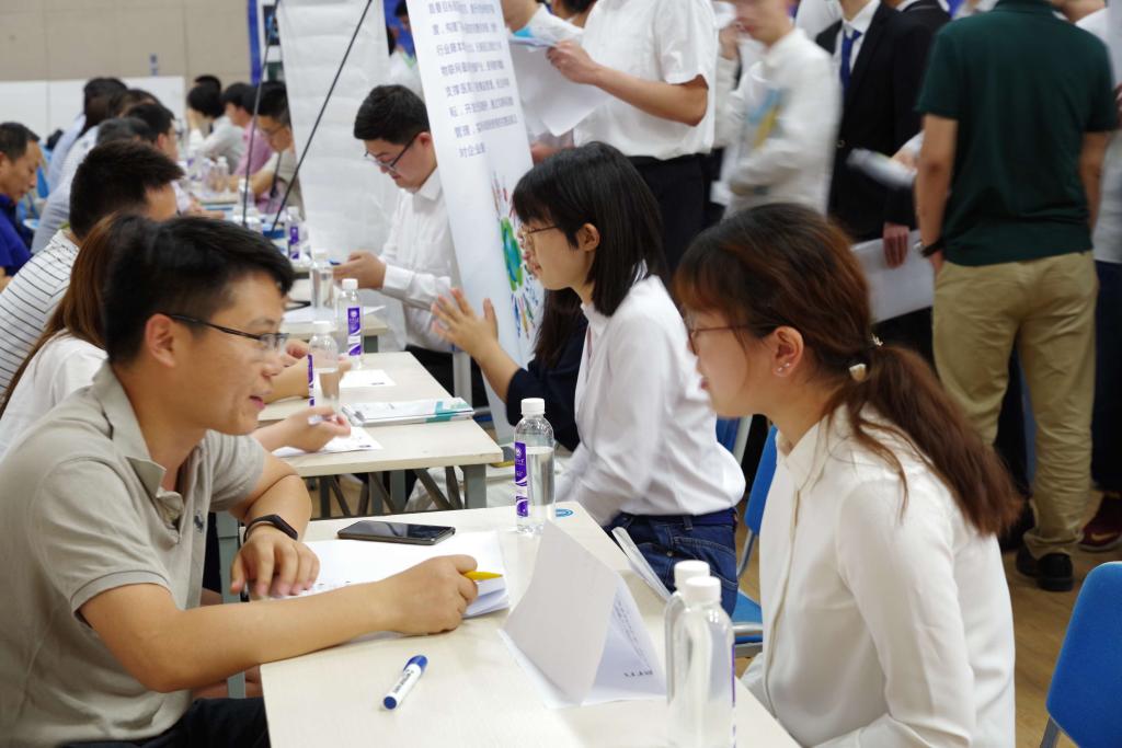 随后双选会正式开始。施耐德、卡特彼勒、中国移动等三十余家家企业与物联网、自动化专业的同学们通过交流面试等方式表达了企业的人员需求以及对学生的培养规划等内容。