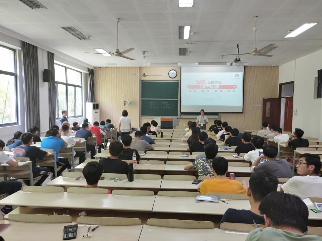6月3日上午,在学院C121成功举行了“2018-2019学年最严考试季”的启动仪式。启动仪式中,院党委副书记耿向阳围绕本次活动的重要意义进行讲话,指出:在思想教育层面:诚信教育、规则意识、契约精神;在学风建设层面:从严治学、以考促学、教育公平;在人才培养层面:严进严出、以考促教、保障质量。院分团委书记吴垚就本次活动具体活动方案展开详细介绍。院辅导员洪筱就由研究生党员担任的“监考助理”其工作内容和职责进行了明晰。