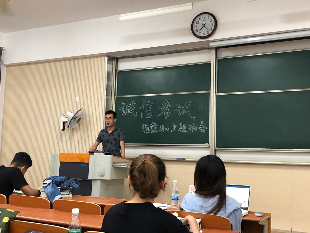 考试周前夕,线下,院2016级、2017级、2018级本科生先后在班主任、辅导员主持下召开“诚信考试”主题班会,会上老师带领同学们认真学习了《ok138cn太阳集团学生手册》上关于违反考场纪律的处理办法,每一位同学自觉签订“诚信考试承诺书”,并在学习委员带领下郑重宣誓。线上,通过学院IOT微信公众号平台,就考前复习办法、考前考试须知以及诚信应考展开了系列的生动宣传。这些预热活动,在同学们心中牢牢植入“诚信为本,公平竞争”的思想理念。