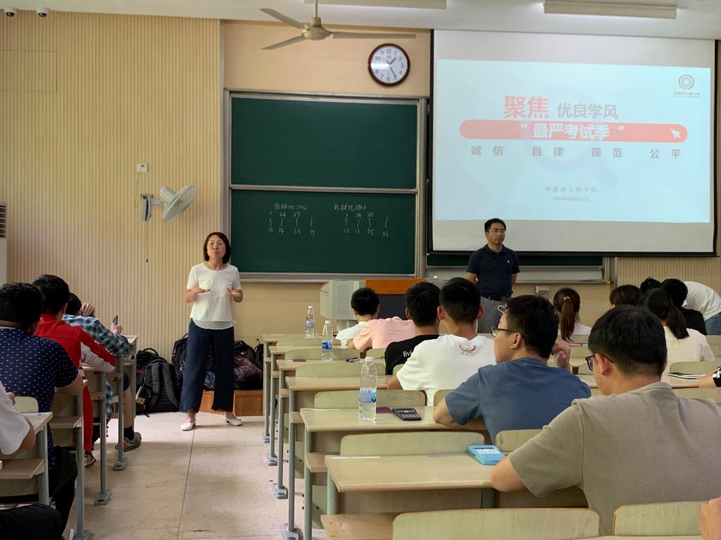 6月5日-14日期末考试期间,学院分管领导、年级分管辅导员、各班班主任进行了三级巡考。每场考试期前一小时,监考助理按部到位,依次进行提前清场、座位随机排列、考生告知书的宣读等系列工作。师生们的各司其职和齐心协作,有力保障良好的考试秩序和氛围,让同学们深刻感受到学院对于学生诚信意识培养的重视及对考试作弊现象的坚决打击。