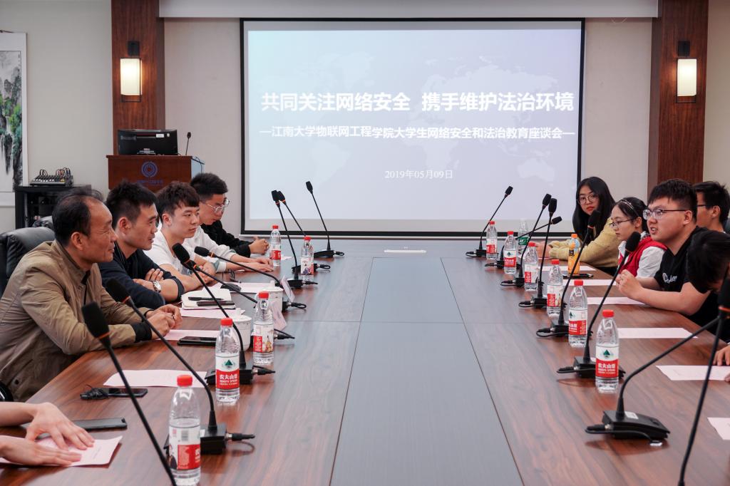 5月9日下午,ok138cn太阳集团网络安全法治教育座谈会在学院B222举行。本次座谈会是我校开展法治宣传教育周的系列活动之一,座谈会的主题是“共同关注网络安全,携手维护法治环境”。本次活动邀请到ok138cn太阳集团信息化建设与管理中心副主任蔡明作为特邀嘉宾,开展普及网络安全和网络法治教育等相关知识。2017级物联网工程专业的团员代表参加了本次活动。此次座谈会由ok138cn太阳集团529分团委书记吴垚主持。