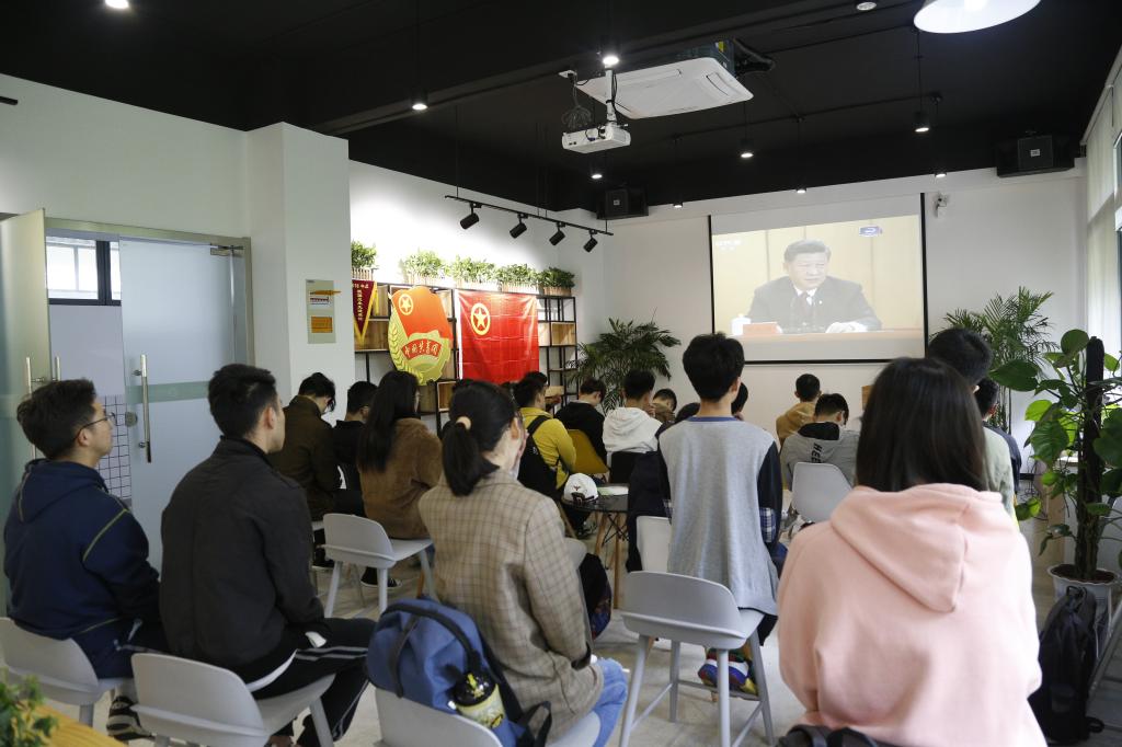 2019年4月30日上午10时30分,纪念五四运动100周年大会在人民大会堂举行,中共中央总书记、国家主席、中央军委主席习近平发表重要讲话。ok138cn太阳集团529高度重视,积极组织学院党政、分团委、党支部、团支部及师生代表在会议室、办公室、教工之家、实验室、宿舍等场所共同观看了网络直播。