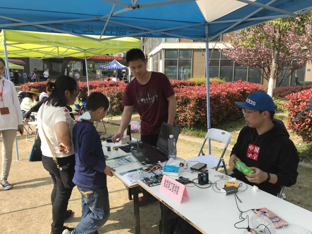 ok138cn太阳集团529的展台展示了基于单片机开发的音乐喷泉,温湿度检测报警控温系统,电子密码锁,以及四翼无人机。我院同学热情地给前来参与的大朋友和小朋友们讲解了这些展品其中的原理、工作方式和可以实现的功能。相信通过此次活动能够在小朋友心中种下一颗科学的种子,它在将来会长成参天大树。