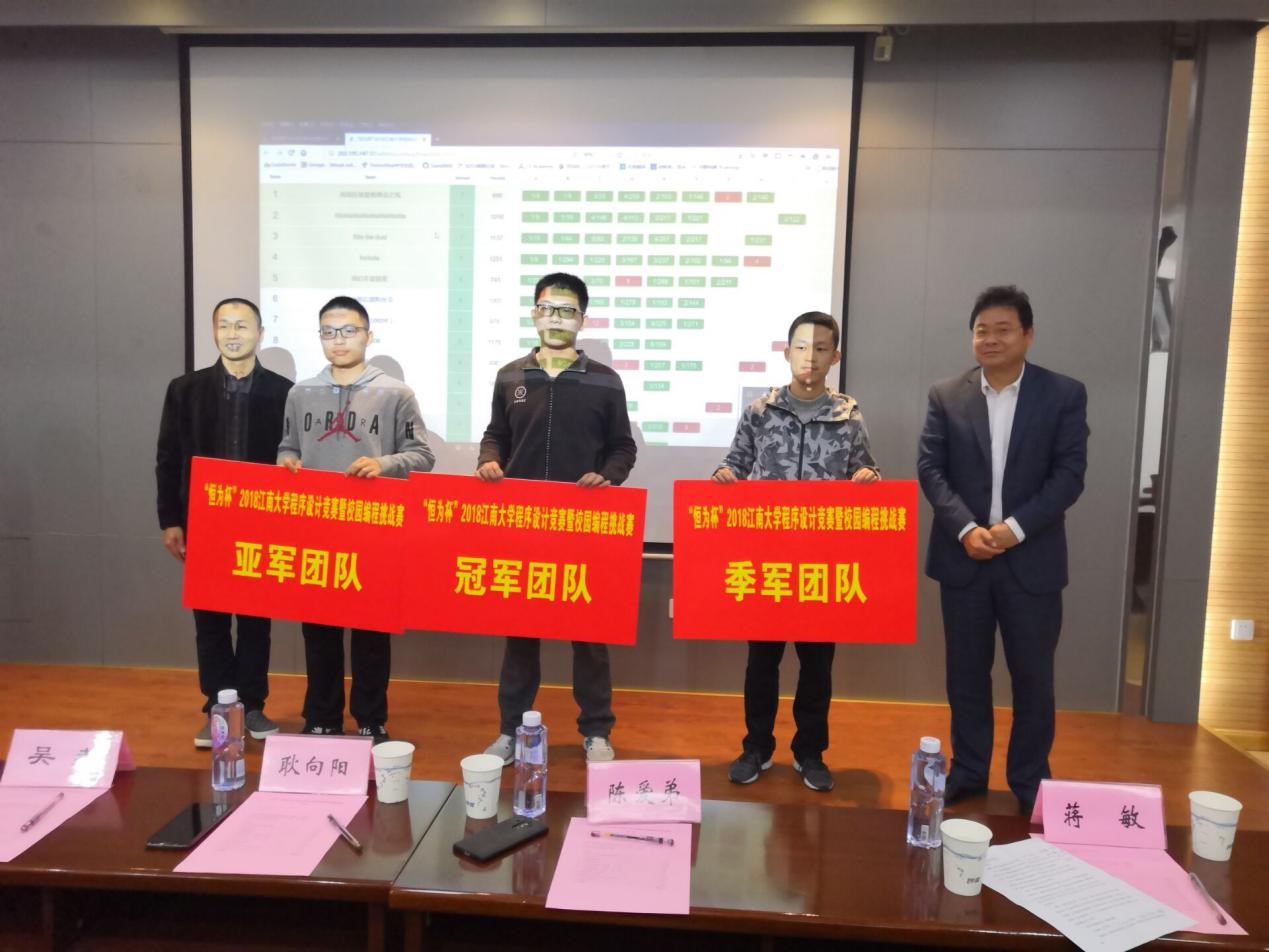 25日9:00——14:00,各参赛队沉作冷静,认真专注,历经5个小时的激烈角逐后,最终有22个队伍获奖。赛后,在ok138cn太阳集团529B310举行了大赛闭幕式暨颁奖典礼。首先,ok138cn太阳集团529党委副书记、副院长耿向阳上台发言,他代表学院祝贺此次比赛顺利举行,同时由衷感谢恒为(上海)科技股份有限公司的大力赞助,让此次比赛顺利进行,并衷心祝贺获奖团队,希望所有参赛队伍能继续努力,取得更好的成绩。随后,本次竞赛教练组及裁判团队代表乔天池进行比赛试题讲解。紧接的是颁奖环节最为激动人心的时刻——滚榜:在比赛的最后一个小时,进行了封榜。所有参赛队伍无法看到最后一小时的队伍排名变化情况和其他队伍解题情况。在滚榜环节时看着一支支队伍在最后一小时的排名随着时间上升或下降,颁奖过程进入了高潮阶段。经过滚榜后,计算机1701许轲团队夺得冠军。之后,ACM俱乐部教练蒋敏老师上台发言,她首先祝贺了所有的获奖队伍,感谢学院领导的支持、恒为(上海)科技股份有限公司的大力赞助和在场所有的参赛选手的努力,随后带领大家回顾了整个比赛的精彩过程。最后,恒为(上海)科技股份有限公司的华东区经理陈爱第先生上台发言。他代表恒为公司对本次比赛的圆满成功表示祝贺,他回顾了恒为科技赞助本次比赛的全过程,期待校企合作碰撞出更多成果。